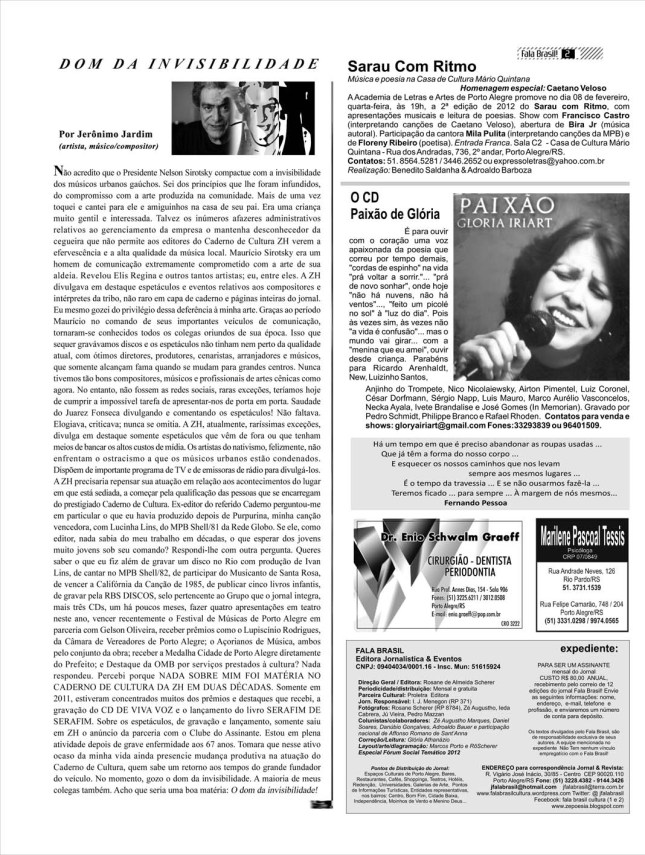 Jornal Fala Brasil! edição de verão 2012 circulando – pegue o seu nos pontos culturais e leia aqui no blog