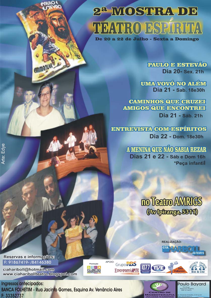 A Cia Hariboll promove no mês de Julho, do dia 20 a 22, de sexta a domingo, a 2ª Mostra de Teatro Espírita.