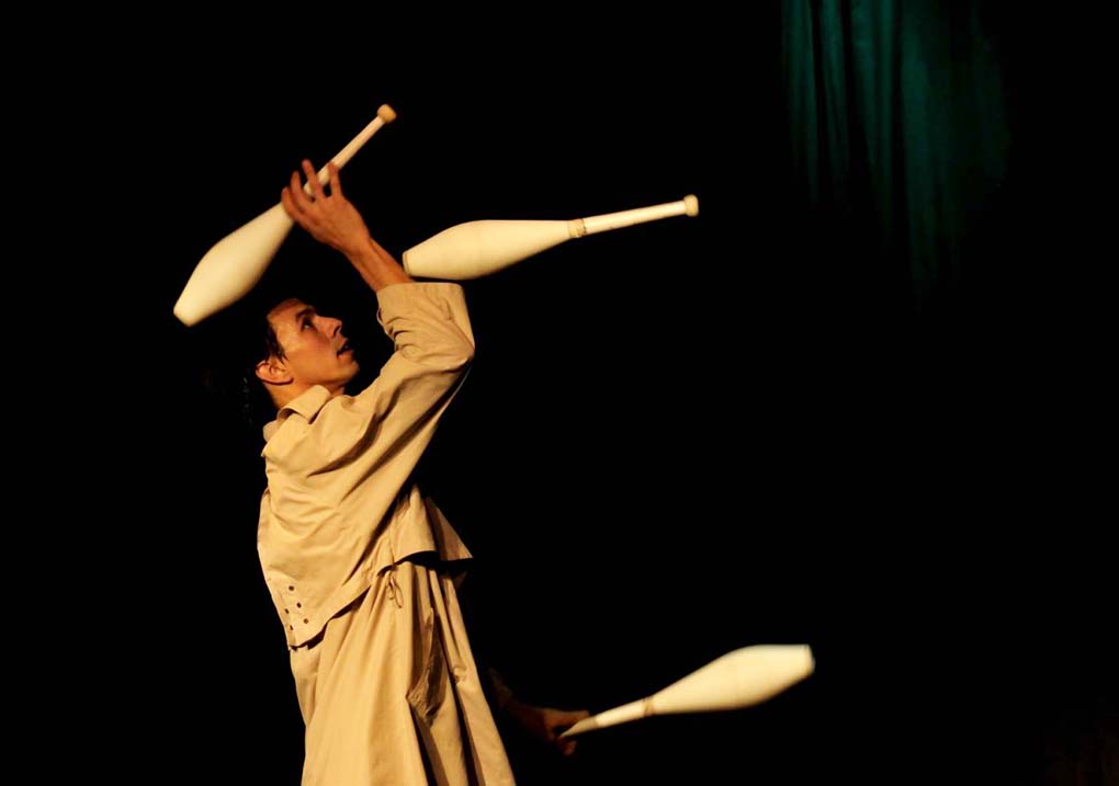 Pablo apresenta um fragmento do projeto autoral Hora Pico, onde, por meio do teatro do absurdo, compartilha um momento de sua vida cotidiana, o despertar. Cria diferentes situações onde brinca com o limite entre sua realidade e imaginação. O malabarismo, o teatro e a dança estão a serviço da dramaturgia.