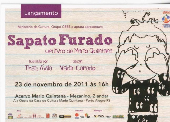 Já o quinto volume da série, Sapato Furado foi ilustrado por Thais Ávila, tem design de Valdir Canado e trilha sonora composta pelo mineiro Fernando Brant, que criou a canção-tema do CD, Mario Quintana homenagem ao poeta Quintana com quem ele se encontrou pessoalmente em Porto Alegre. Em Mario Quintana a voz é de Tadeu Franco intérprete mineiro que iniciou sua carreira musical produzido pelo parceiro de Brant, Milton Nascimento. A produção da canção é de Robertinho Brant que também divide a composição com Fernando. A participação especial de Fernando Brant conta com a versão da crônica em que relata com sensibilidade e admiração seu encontro com o poeta na década de 90.