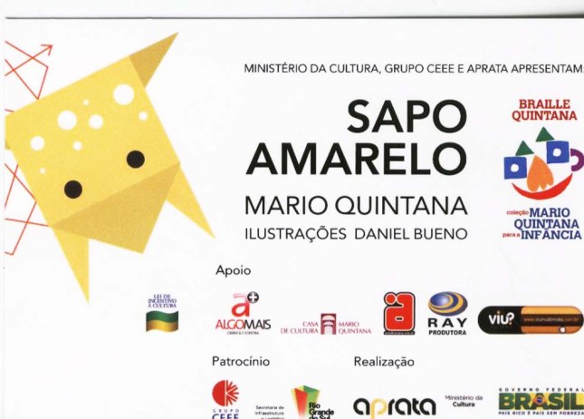 Braille Quintana – Coleção Mario Quintana para a Infância tem o patrocínio do Grupo CEEE, via Lei Federal de Incentivo à Cultura, e é dirigido às crianças e jovens cegos do País.