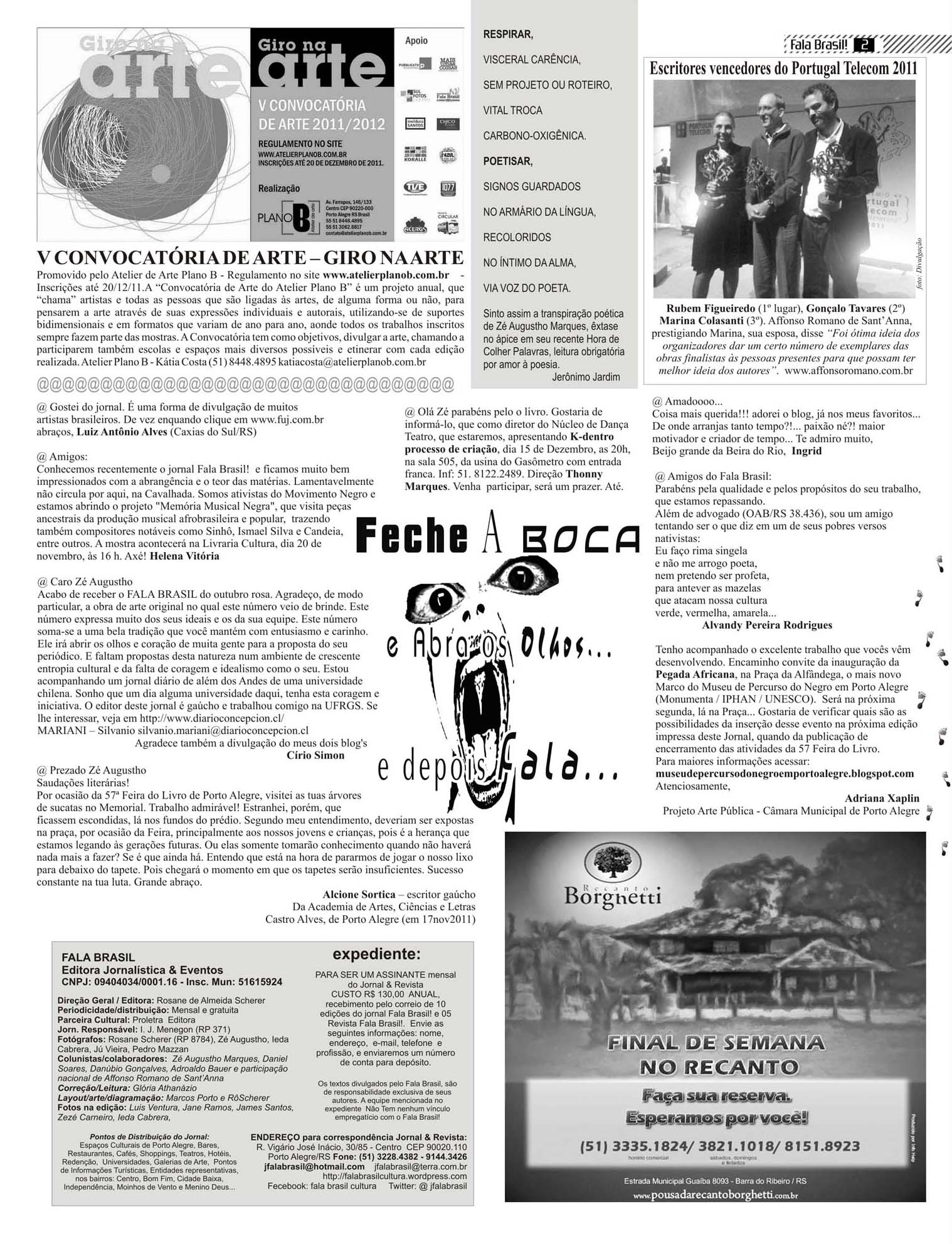 Conhecemos recentemente o jornal Fala Brasil! e ficamos muito bem impressionados com a abrangência e o teor das matérias.
