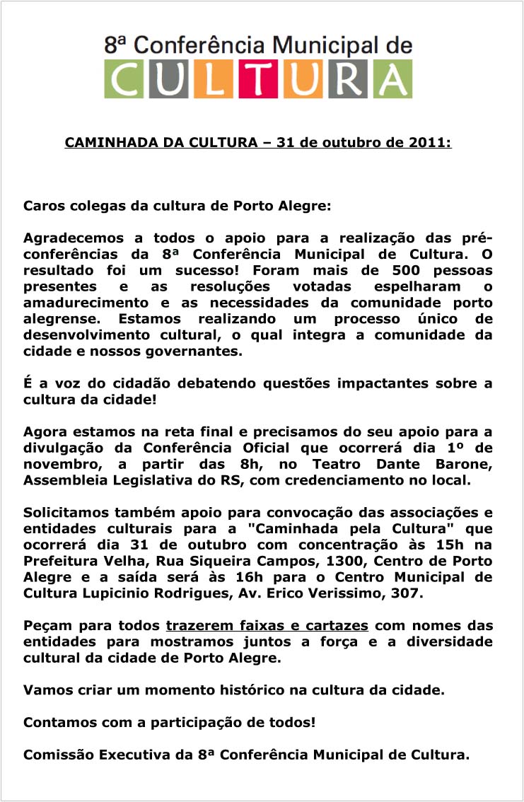 Participe repassando! E pegue seu jornal, gratuito, nos pontos culturais de Porto Alegre/RS