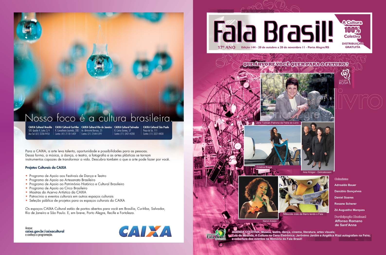 Capa e contra capa da edição OUTUBRO ROSA do Fala Brasil! que está circulando na Feira do Livro de Porto Alegre/RS