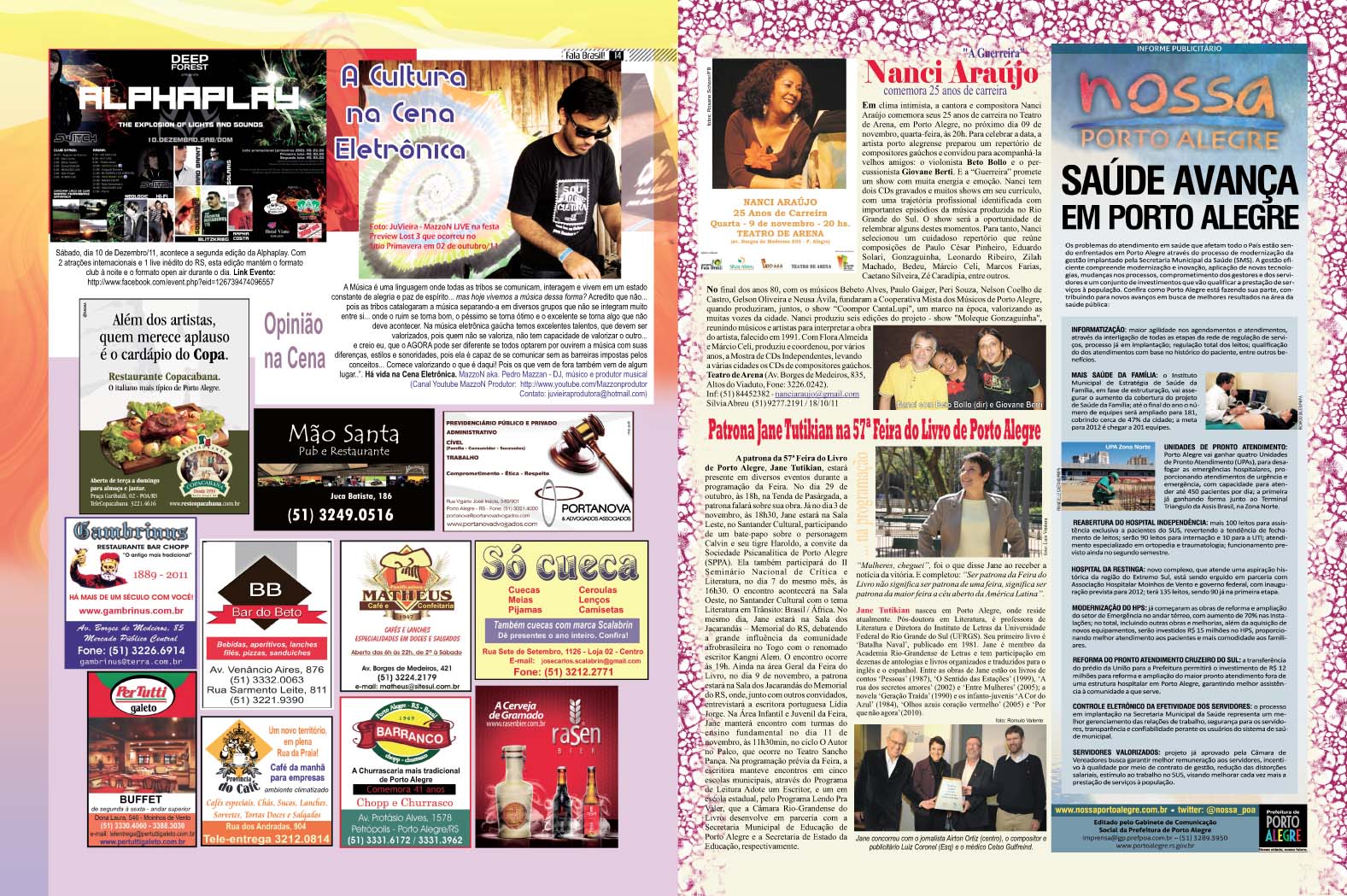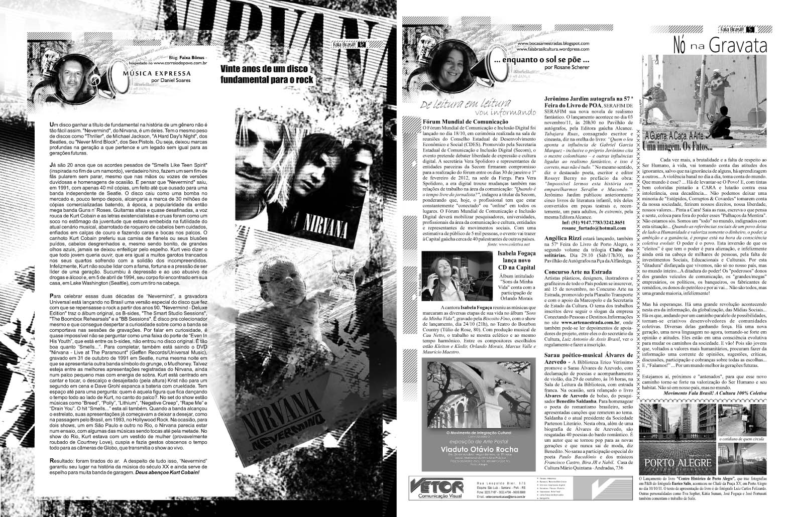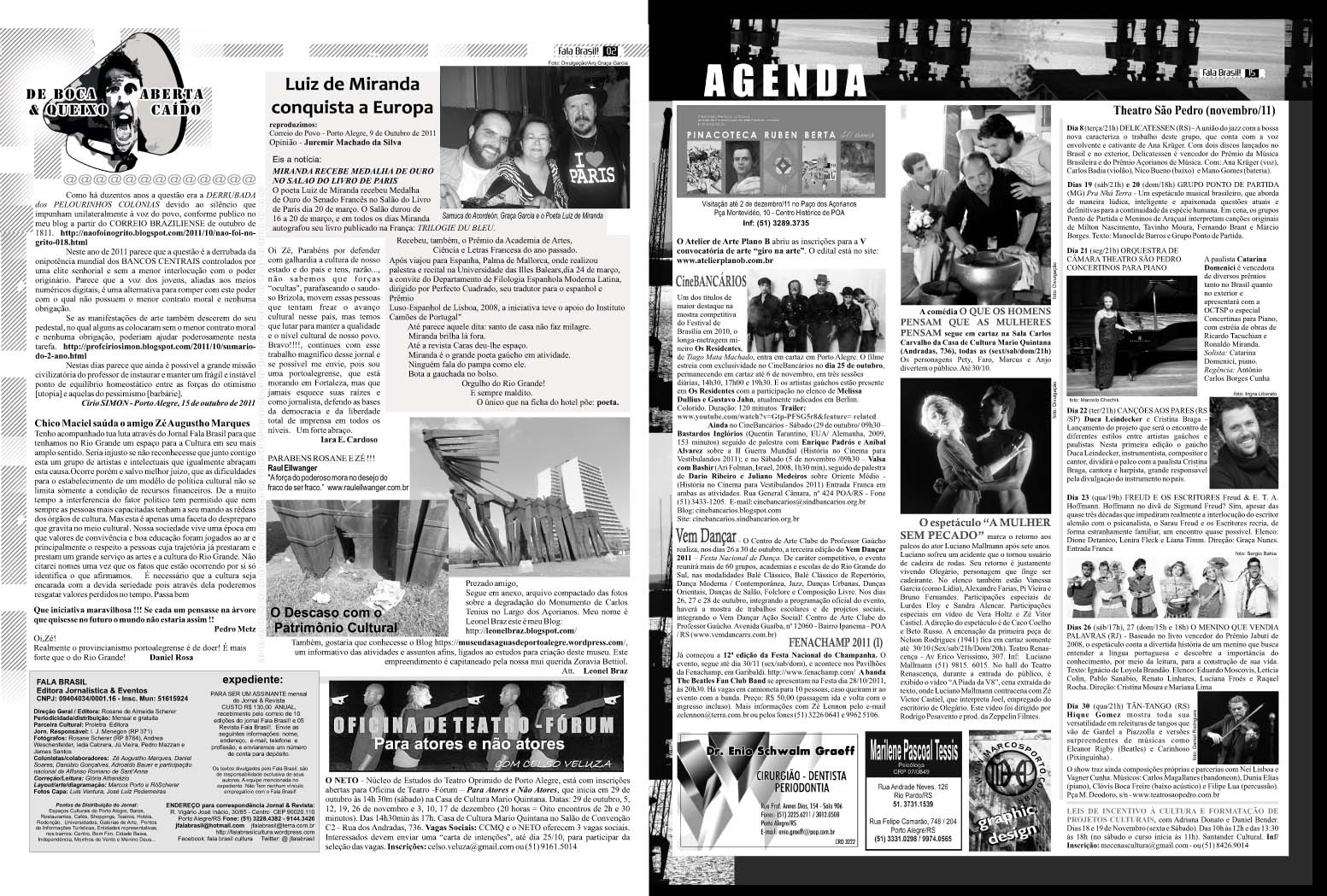 Os colunistas: Adroaldo Bauer, Daniel Soares, Danúbio Gonçalves, Zé Augustho Marques, Rosane Scherer, e a participação especial Nacional de Affonso Romano de Sant’Anna. Nesta edição uma grande agenda coletiva com muita informação.