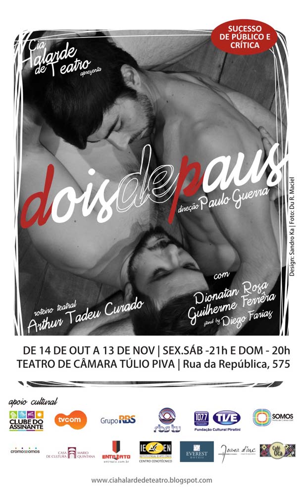 Retorna a cartaz em última temporada o polêmico espetáculo da Cia Halarde de Teatro “DOIS DE PAUS”.que nesta temporada comemora o aniversário de 21 da Cia.