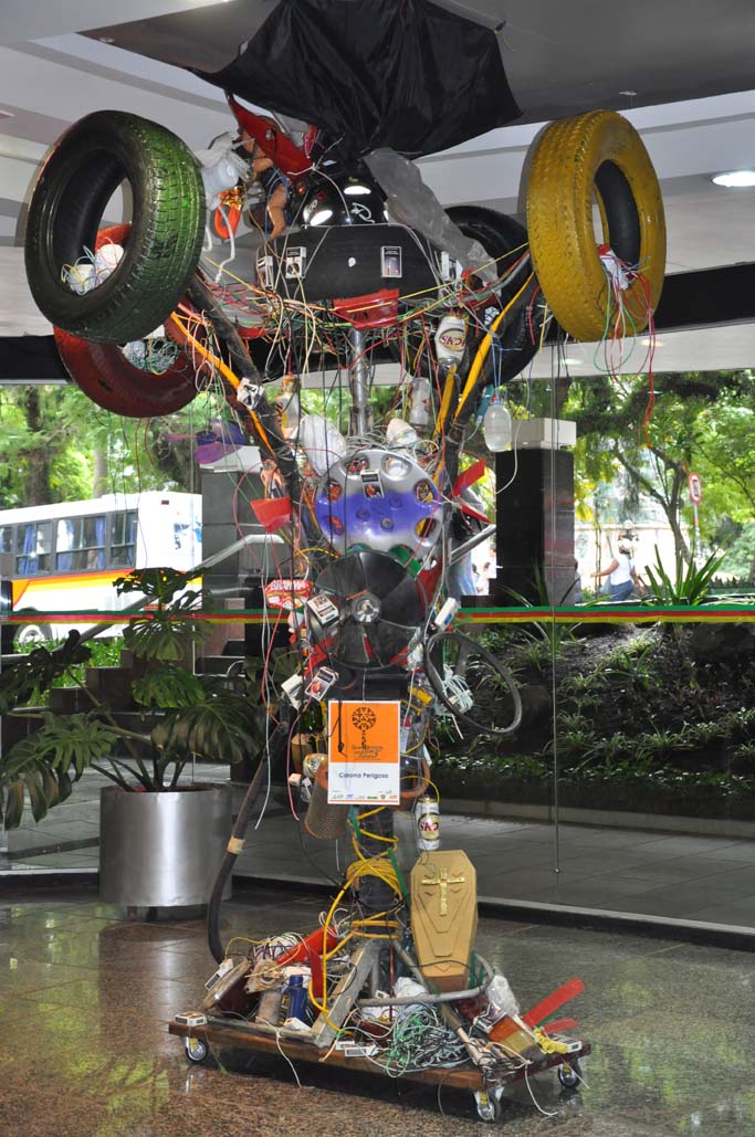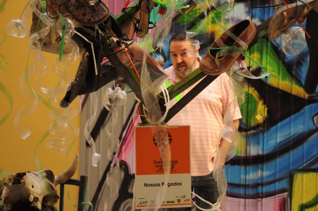 Mostra itinerante reúne fotografias e instalações feitas com lixo retirado do entorno da Rodovia do Parque. Abertura oficial foi na tarde do dia 10/04.