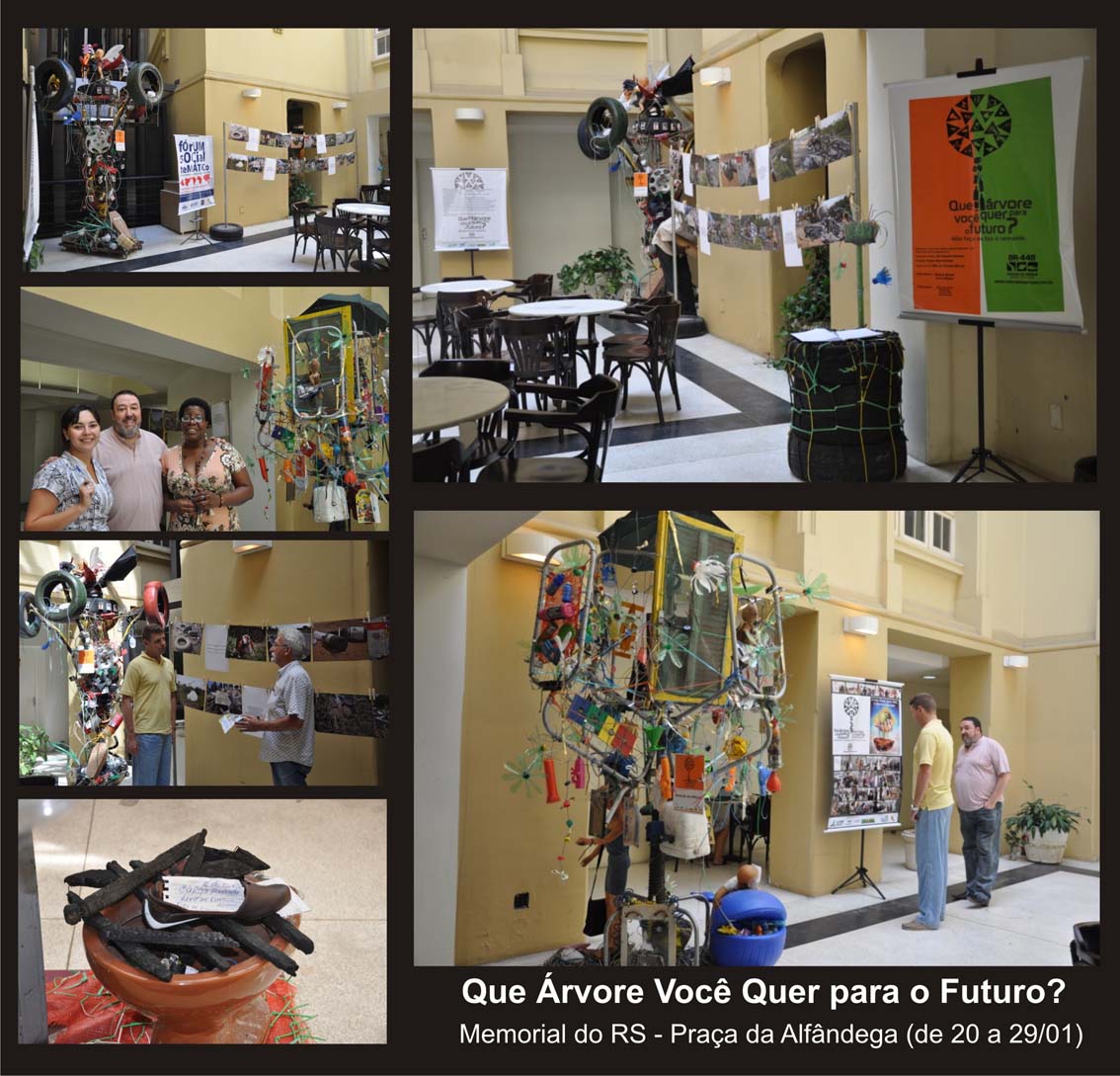 Os usuários que passam pela Estação Mercado da Trensurb, até 20 de abril, serão surpreendidos pela mostra itinerante Que árvore você quer para o futuro? Não faça do lixo a semente. A exposição é uma parceria entre o Departamento Nacional de Infraestrutura de Transportes (DNIT) e a STE – Serviços Técnicos de Engenharia S.A., por meio da Gestão Ambiental da BR-448, e conta com a instalação artística de quatro árvores de ferro cobertas com resíduos sólidos retirados do entorno da Rodovia do Parque. Completam o projeto, 24 fotografias que revelam locais irregulares utilizados para o descarte de lixo Na faixa de domínio da autoestrada.