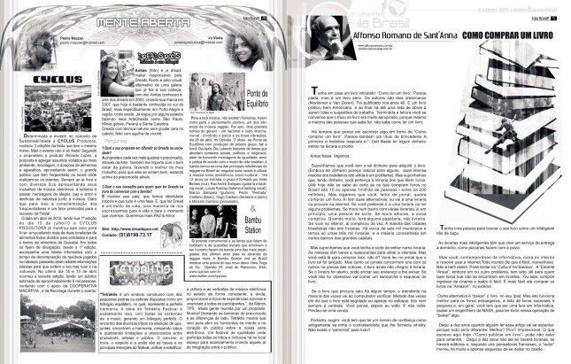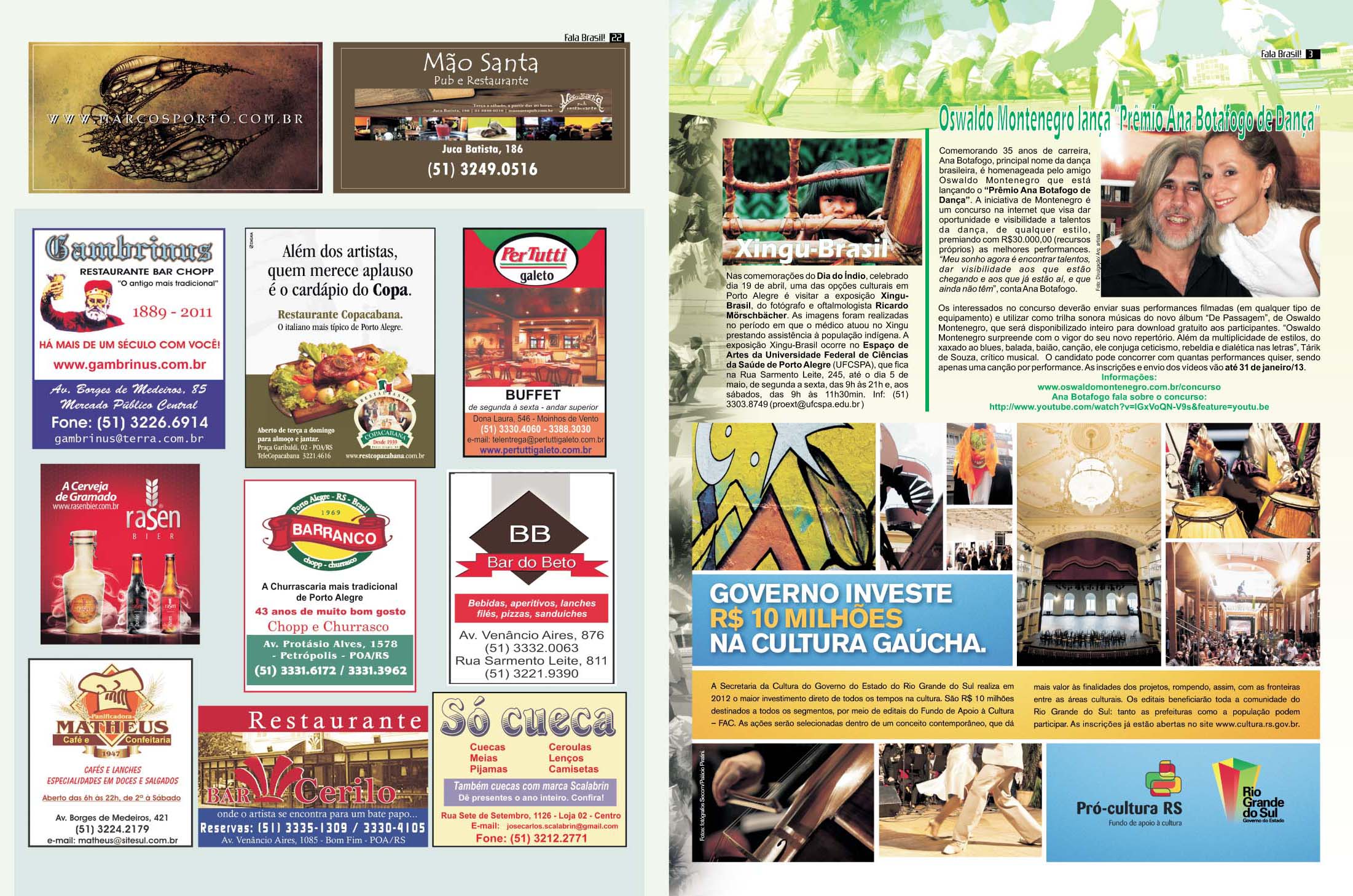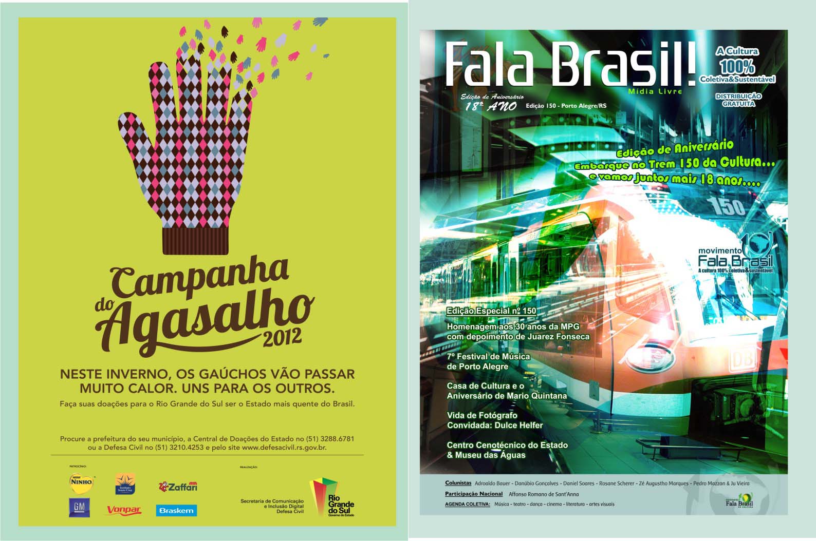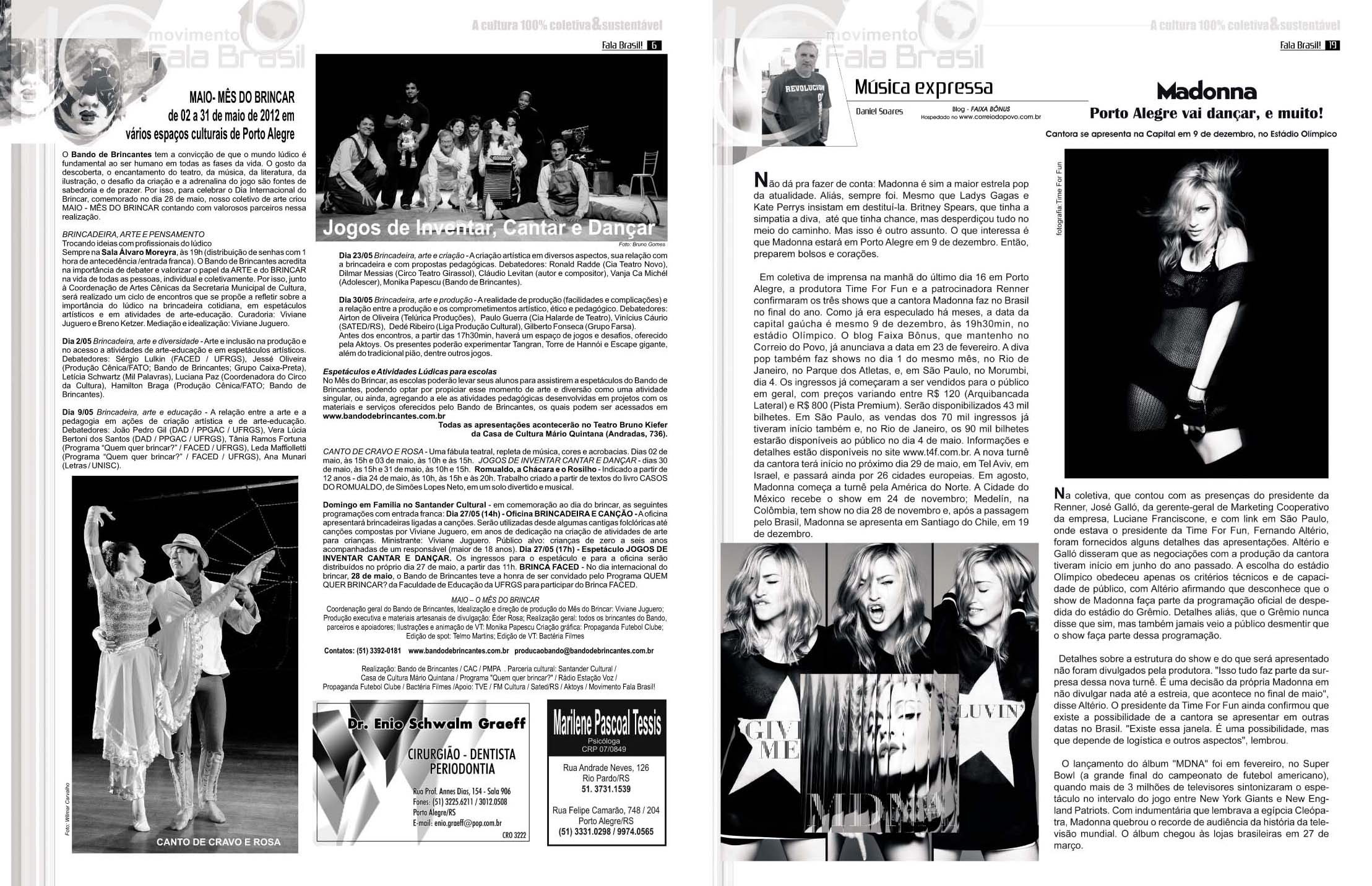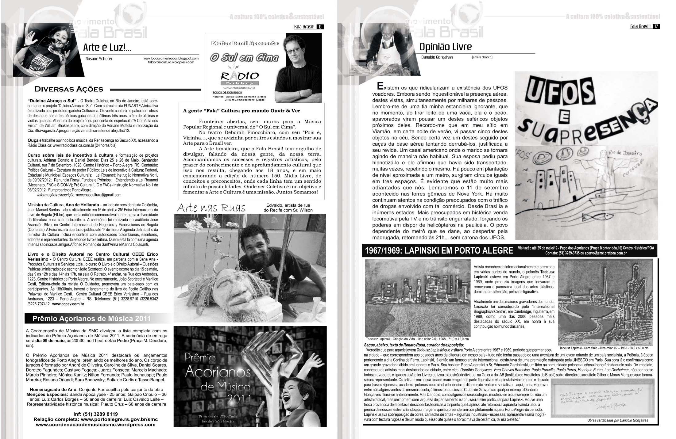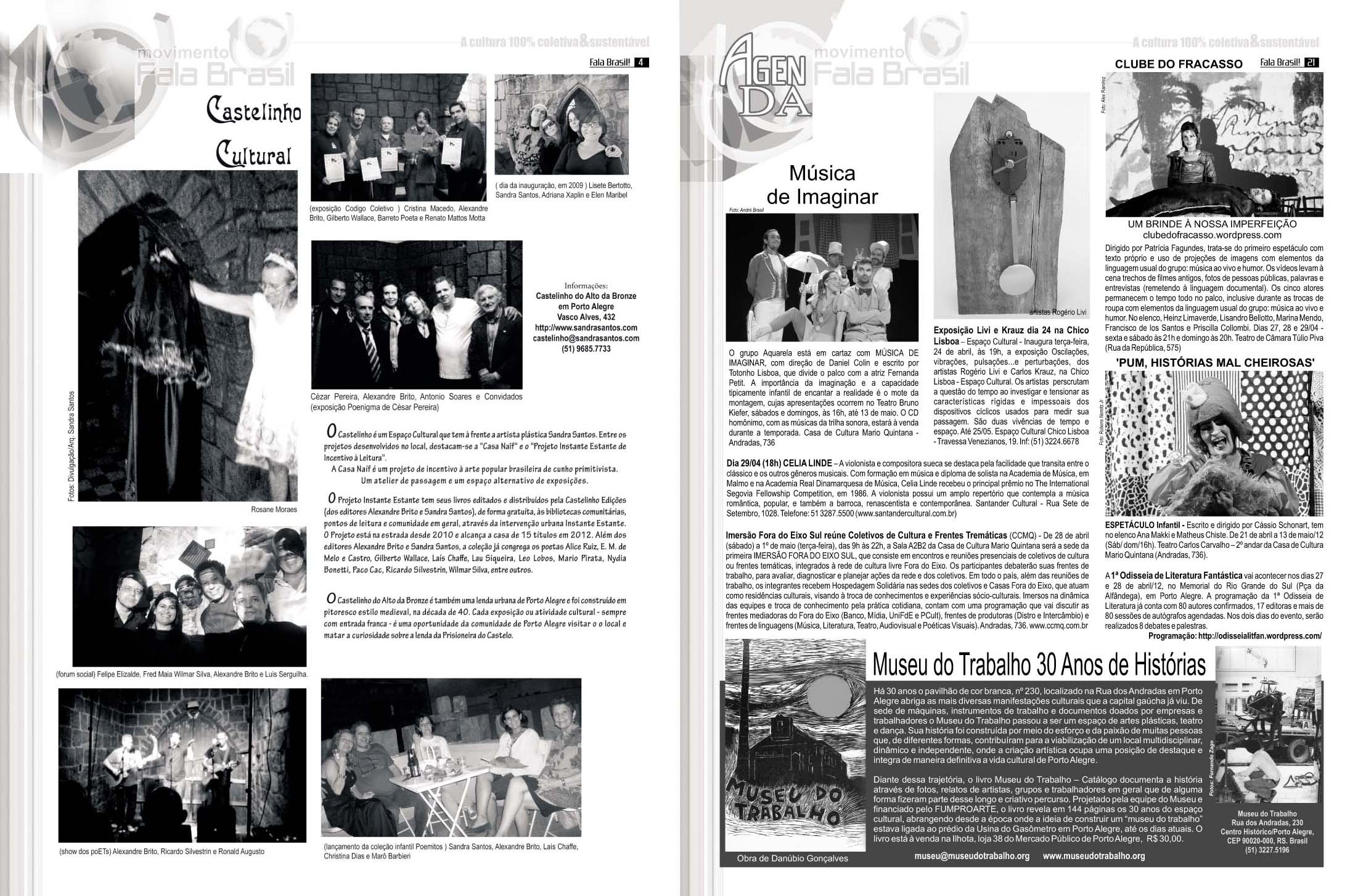 Hoje é Aniversário do JORNAL FALA BRASIL! Hoje parabenizamos todos os artistas e fazedores de arte, por estarem há 18 anos em nossas páginas iluminando a nossa cidade com Cultura!!! Obrigada a TODOS os apoiadores que estiveram com o Fala Brasil Cultura, seja incentivando, escrevendo, anunciando, lendo, opinando, criticando… Evoluímos, com certeza juntos! E hoje mais ainda, amadurecidamente, acredito cada vez mais na Cultura & na Arte como forma de humanizar as pessoas. Agradeço especialmente a todos os Fazedores do Fala, mês a mês… Marcos Porto, Glória Athanázio, Ieda Leonor Toscani Cabrera, Zé Augustho Marques, Daniel Soares, Danúbio Gonçalves, Adroaldo Bauer Corrêa, Pedro Mazzan, Ju Vieira, e nosso querido amigo e grande poeta Affonso Romano Santanna… É um grande privilégio estar e conviver com pessoas tão maravilhosas, talentosas e Arteiras… ACENDA A LUZ. Embarque no Trem 150 da Movimento Fala Brasil 100% Cultura…